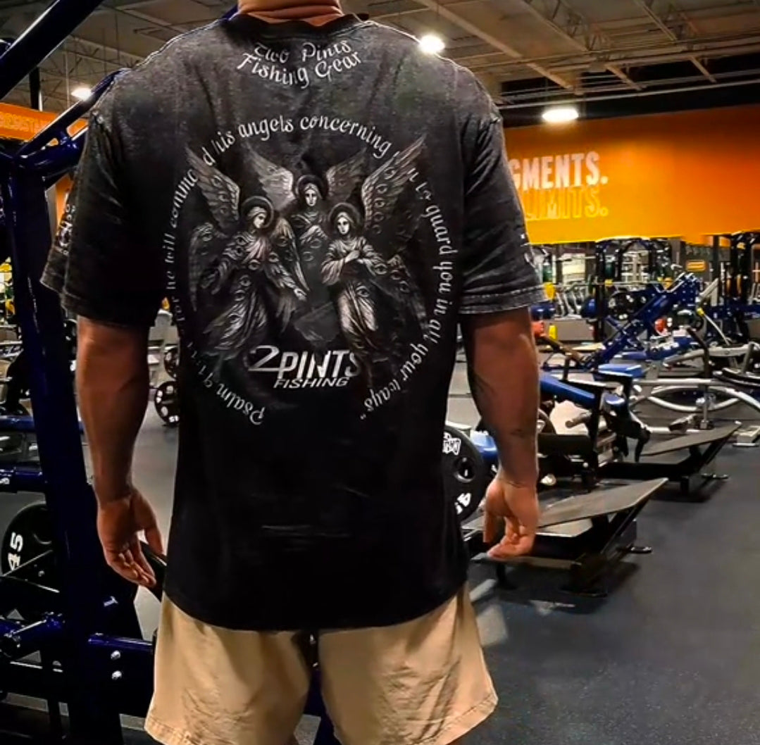 Step into comfort, craftsmanship, and divine inspiration with the Archangels Psalm 91:11 Tee by 2 Pints Fishing. Each shirt is individually hand-pressed and designed for those who wear their faith boldly—whether you're on the water, in the gym, or living life with purpose.